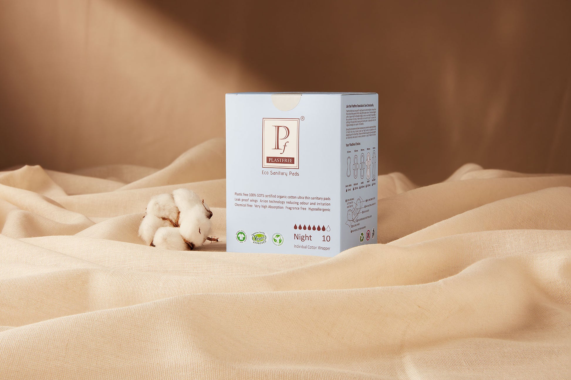 PLASTFREE 100% Organic Cotton Sanitary Pads Night (Pack of 12-120 Pads) MULTIPACK OFFER Save £6