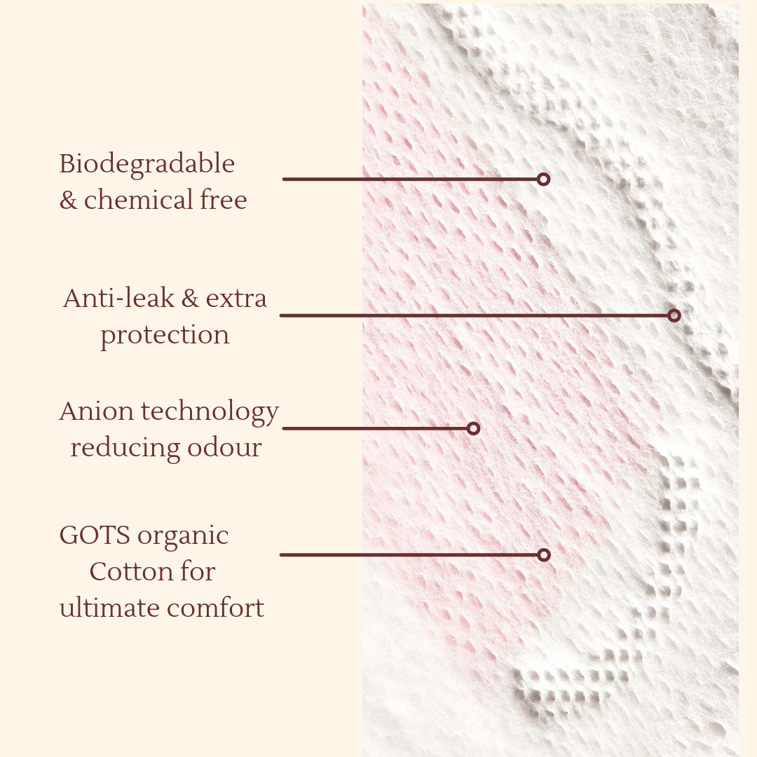 • Premium, Biodegradable, Ultra thin, Organic Cotton Sanitary pad DOUBLE WINGED